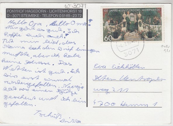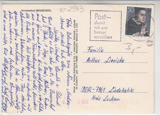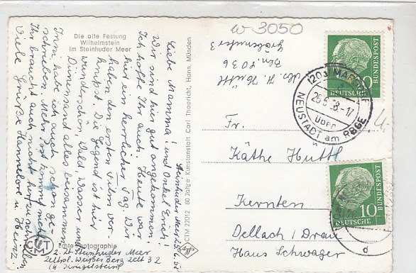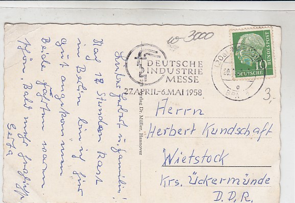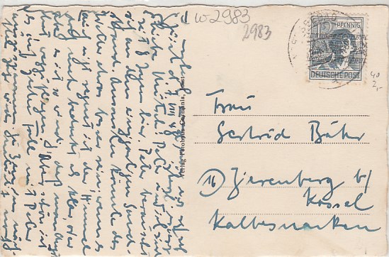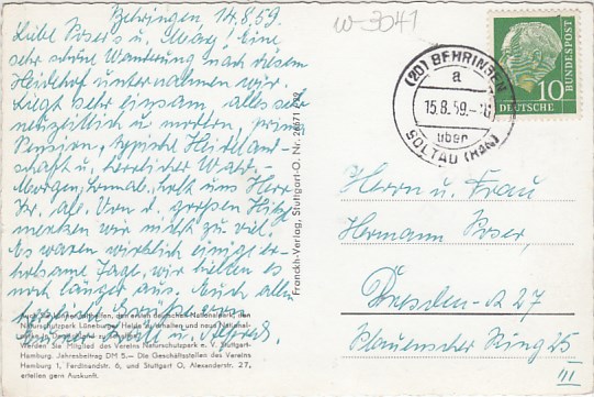 Irmenseul bei Alfeld an der Leine mit Landpoststempel 1959