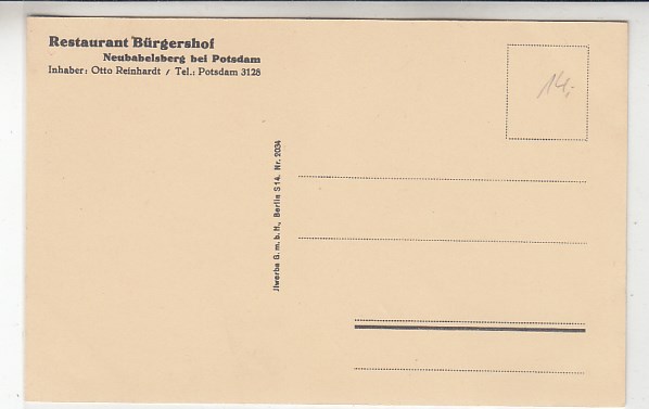 Potsdam Restaurant Bürgershof Neubabelsberg ca 1930
