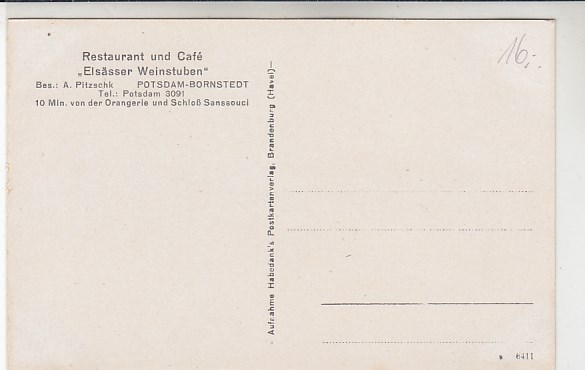 Potsdam Restaurant Cafe Elsässer Weinstuben Bornstedt ca 1935