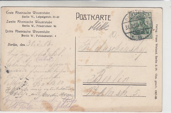Berlin Mitte Friedrichstraße Winzerstube 1908