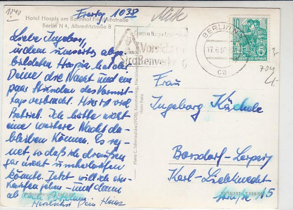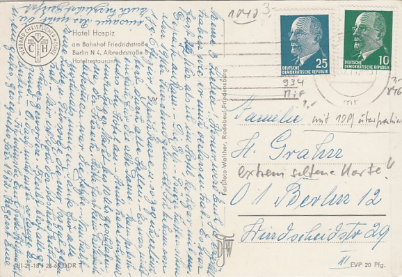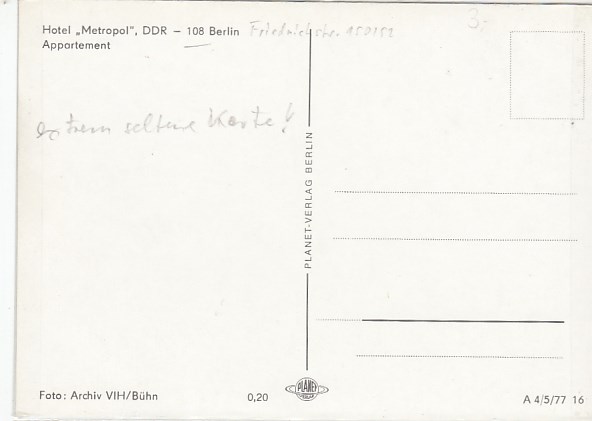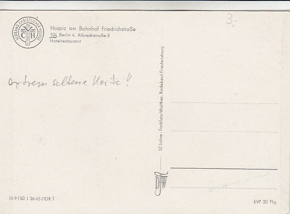 Berlin Mitte Hotel Hospiz am Bahnhof Friedrichstraße 1977