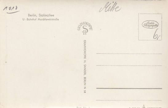 Berlin Mitte Friedrichshain Stalinallee U-Bahnhof 1954