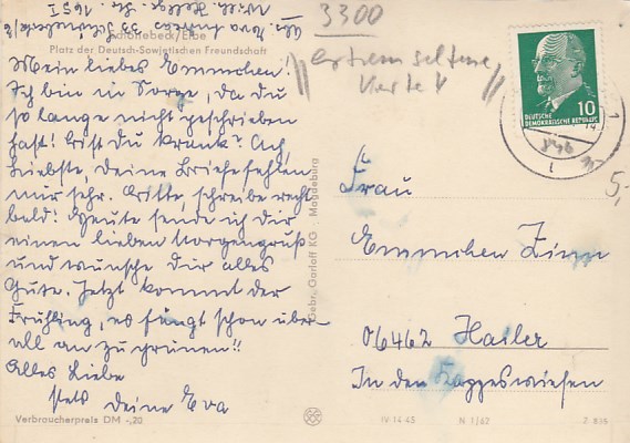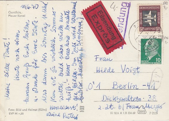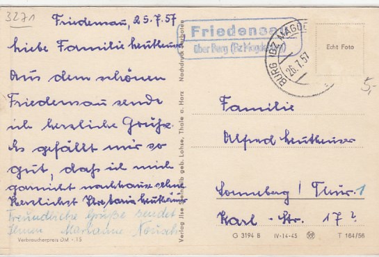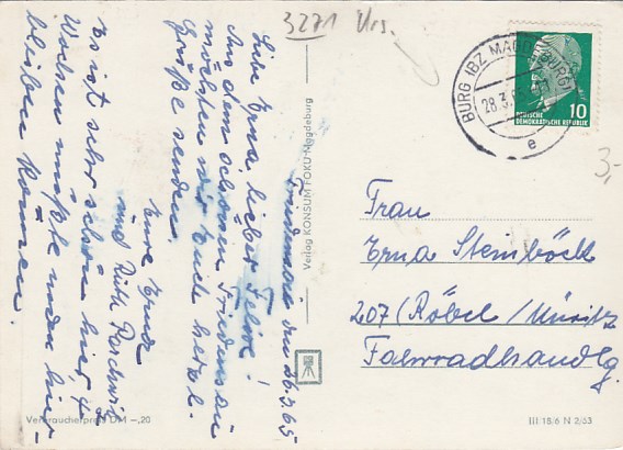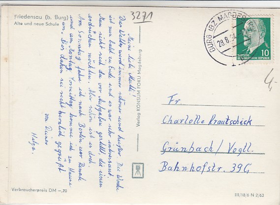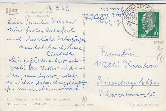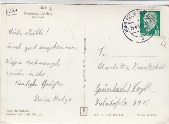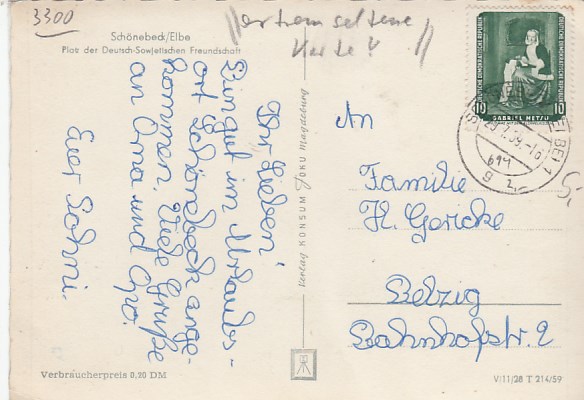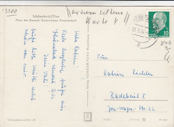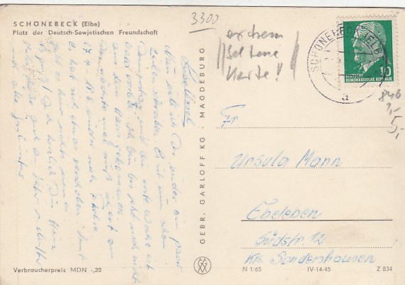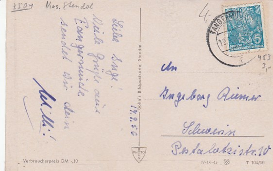 Schönfeld bei Schönhausen Elbe Landpoststempel 1962