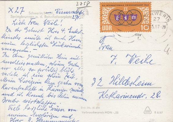 Schwerin Brunnen am Bahnhof 1967