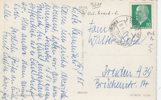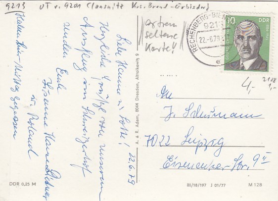 Freiberg in Sachsen Postkarte mit Sonderstempel 1975