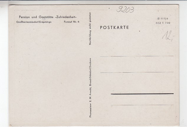 Großhartmannsdorf Erzgebirge Gaststätte Zufriedenheit ca 1940