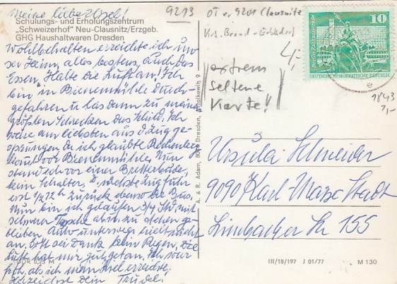 Neu-Clausnitz im Erzgebirge Schweizerhof 1977