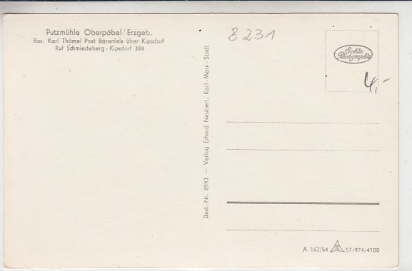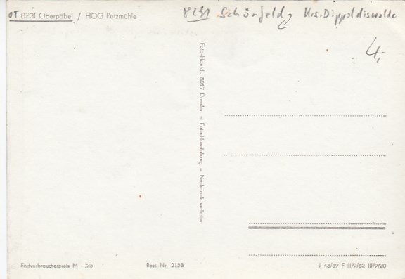 Schönfeld OT Oberpöbel Pöbeltal im Erzgebirge Putzmühle 1954