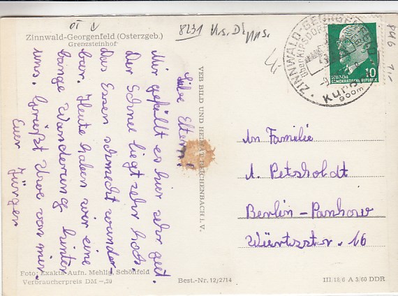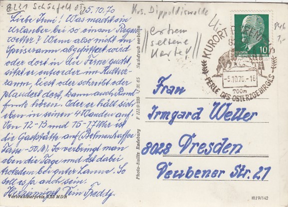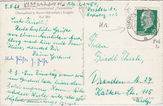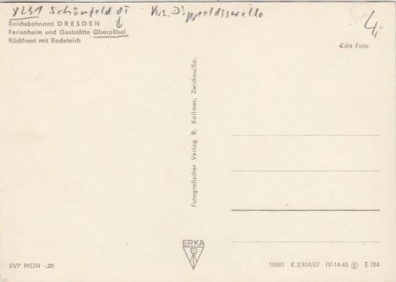 Schönfeld OT Oberpöbel Pöbeltal im Erzgebirge Ferienheim Reichsbahnamt Dresden 1967
