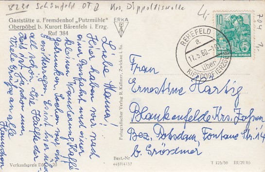 Schönfeld OT Oberpöbel Pöbeltal im Erzgebirge 1960