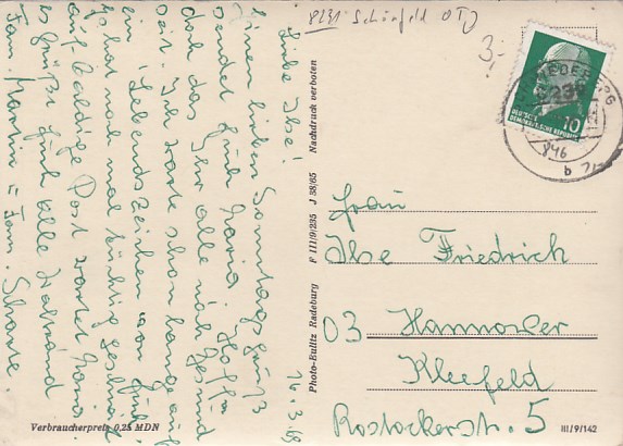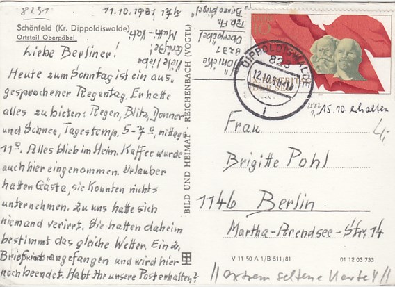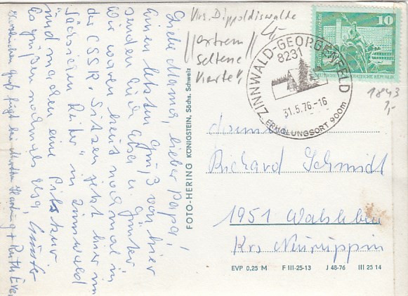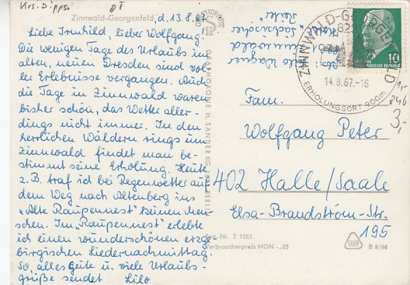 Schönfeld OT Oberpöbel Pöbeltal im Erzgebirge Kinderferienlager mit Sonderstempel 1968