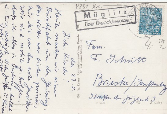 Müglitz-Gottgetreu bei Fürstenwalde im Erzgebirge 1958