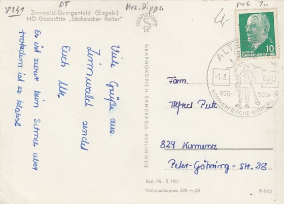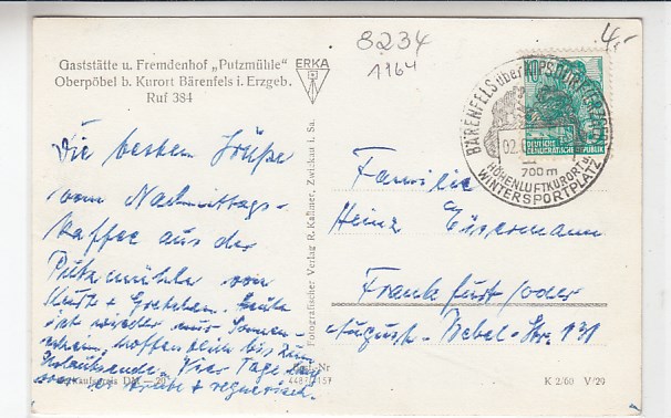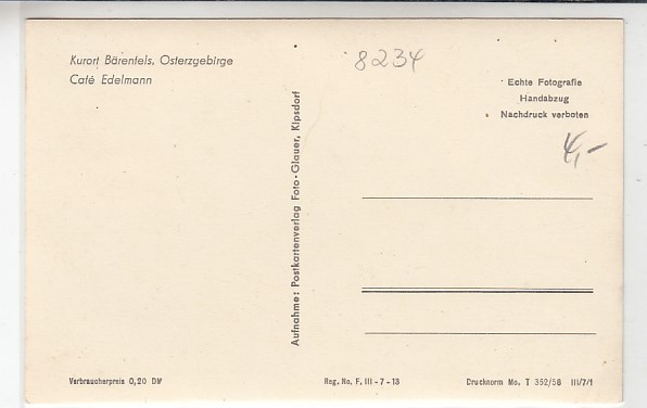 Bärenfels im Erzgebirge Cafe Edelmann 1964