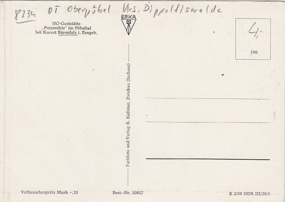 Schönfeld OT Oberpöbel Pöbeltal im Erzgebirge Putzmühle 1968