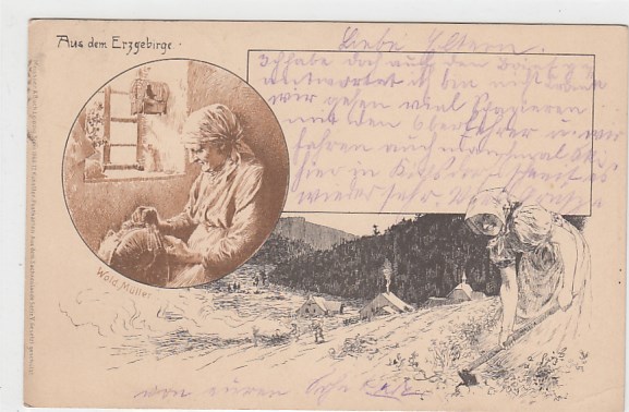 Kipsdorf im Erzgebirge Trachten Wold. Müller Künstlerkarte ca 1905