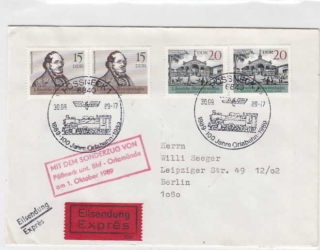 Pößneck Thüringen Briefe Belege 1989