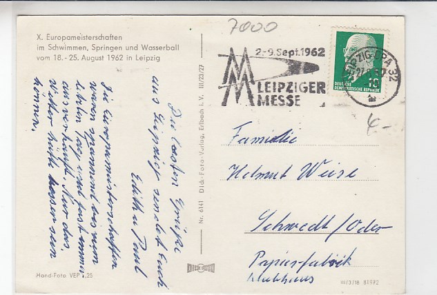 Forst in der Lausitz Schwimmbad 1961 Sonderstempel Radrennbahn
