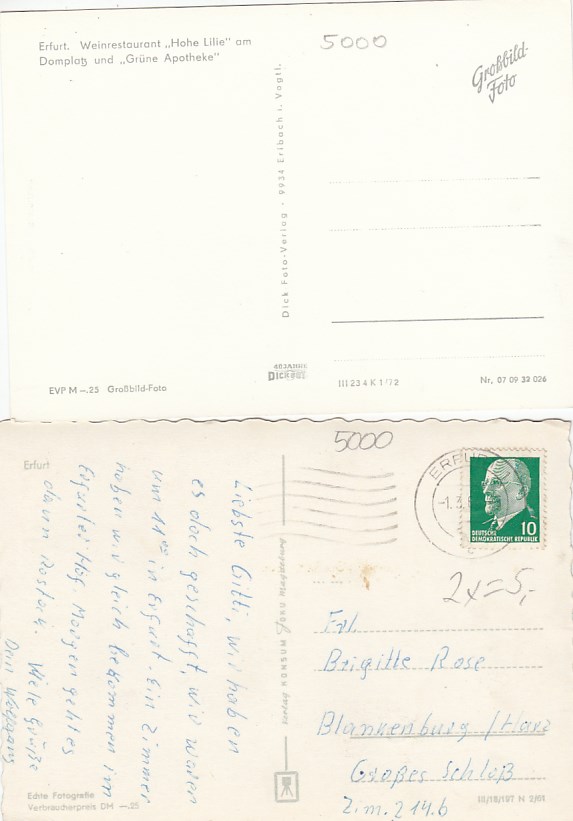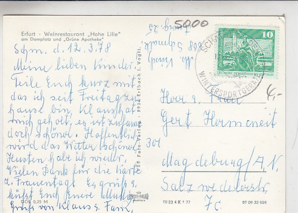 Erfurt Thüringen Weinrestaurant Hohe Lilie 1977