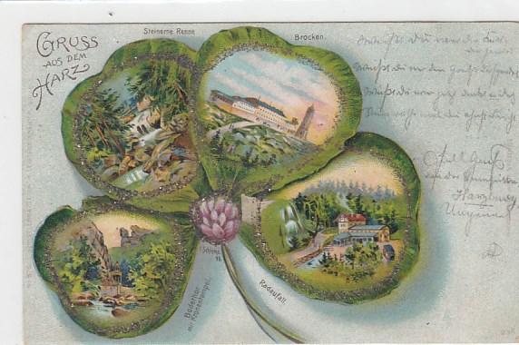 Brocken im Harz Steinerne Renne Radaufall Kleeblatt Litho mit glitzersteinen 1900