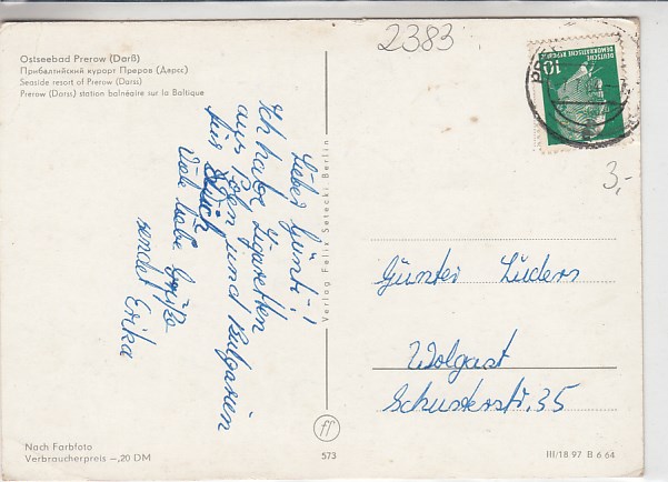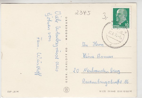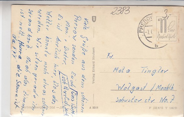 Rostock Hochhaus Aufdruck in Russisch 1962
