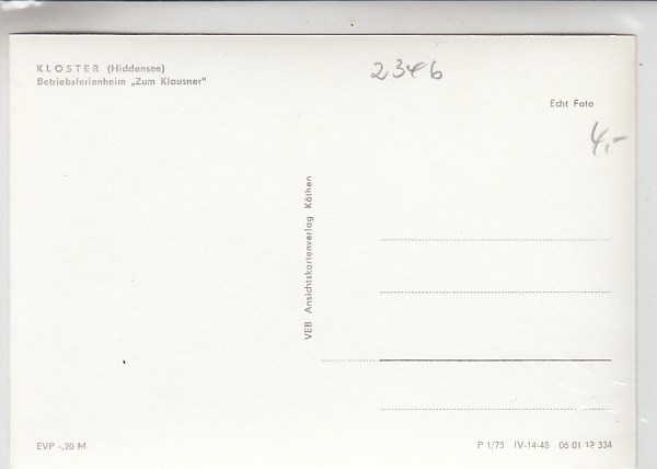 Kloster auf Insel Hiddensee Zum Klausner 1975