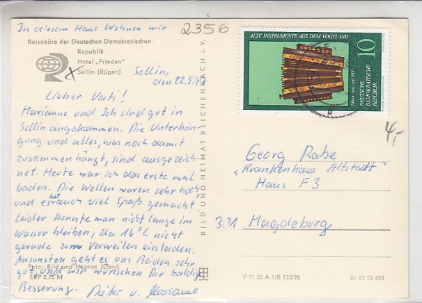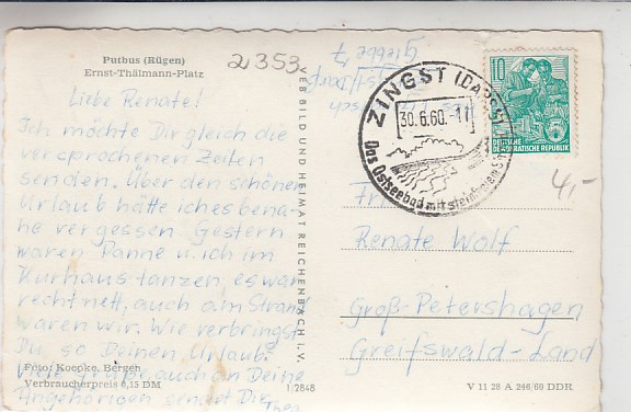 Sassnitz-Saßnitz auf Rügen Briefe Belege Eisenbahn 1989