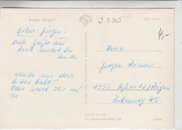 Ostseebad Binz auf Rügen Foto Karte 1955