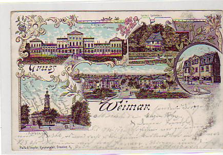 81094 [5300o36] |  | Weimar Litho mit Bahnhofshotel,Schloss 1898 | 17.00EUR | In den Warenkorb |