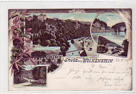 Wolkenstein Erzgebirge Litho mit Bahnhof,Waldmühle 1898