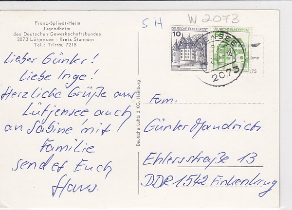 Ostseebad Neuhaus Landpoststempel Dändorf bei Ribnitz-Damgarten 1957 FDGB-Heim