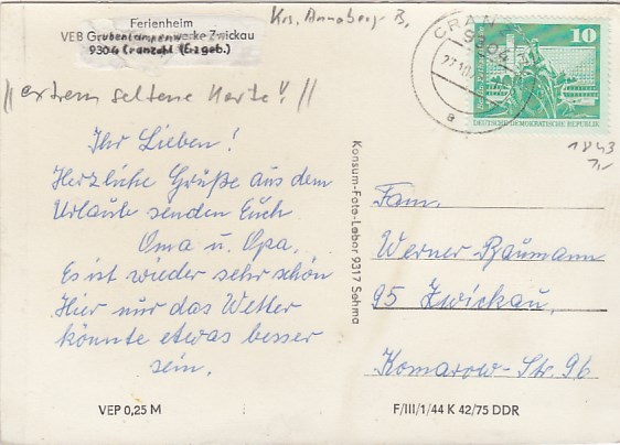 Wolkenstein im Erzgebirge in Sachsen Ferienheim Waldfrieden 1979