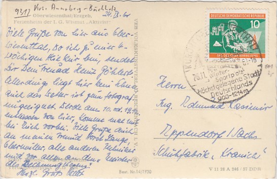 Oberwiesenthal im Erzgebirge Ferienheim I.G.Wismut Sachsenbaude 1964