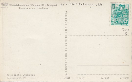 Wolkenstein OT Warmbad im Erzgebirge Wismut Sanatorium Kinderheim 1959