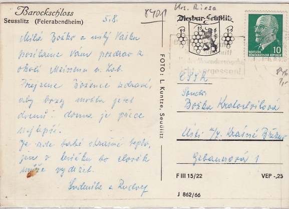 Diesbar-Seußlitz an der Elbe Feierabendheim Barockschloß 1966