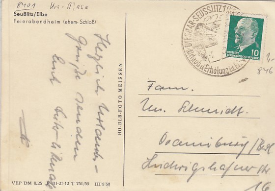Diesbar-Seußlitz an der Elbe Feierabendheim Barockschloß 1959