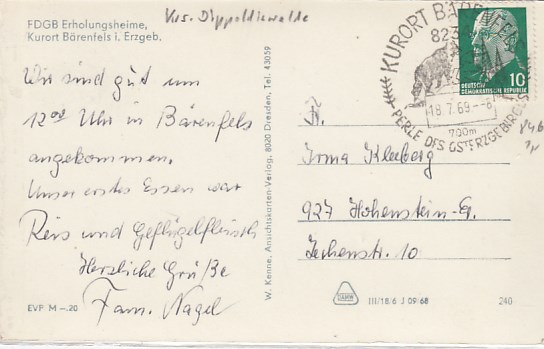 Kurort Bärenfels im Osterzgebirge FDGB-Heim 1969