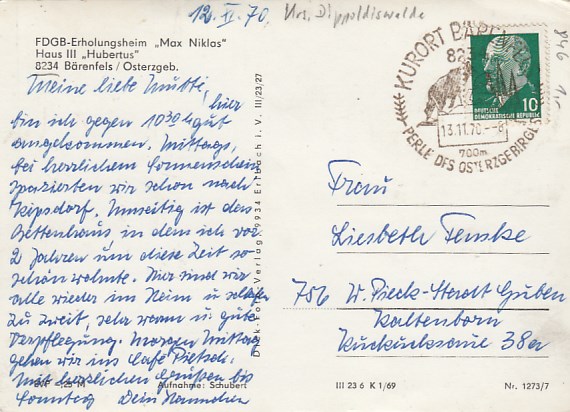 Kurort Bärenfels im Osterzgebirge FDGB-Heim 1975