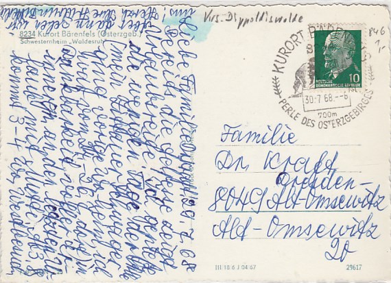 Kurort Bärenfels im Osterzgebirge Schwesternheim Walderuh 1967