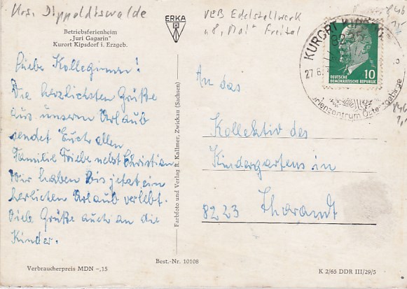 Kurort Kipsdorf im Osterzgebirge Ferienheim Juri Gagarin 1965
