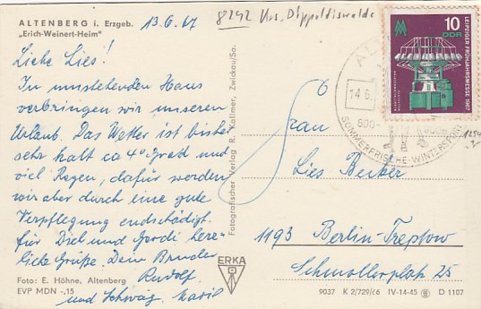 Altenberg im Osterzgebirge Erich-Weinert-Heim 1966
