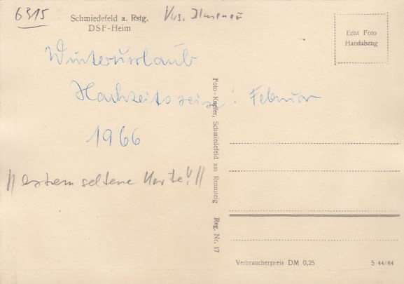 Schmiedefeld am Rennsteig Thüringen DSF-Heim 1964