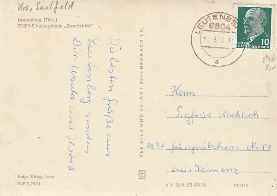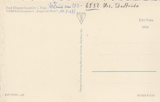 Leutenberg in Thüringen Erholungsheim Katja Niederkirchner 1973