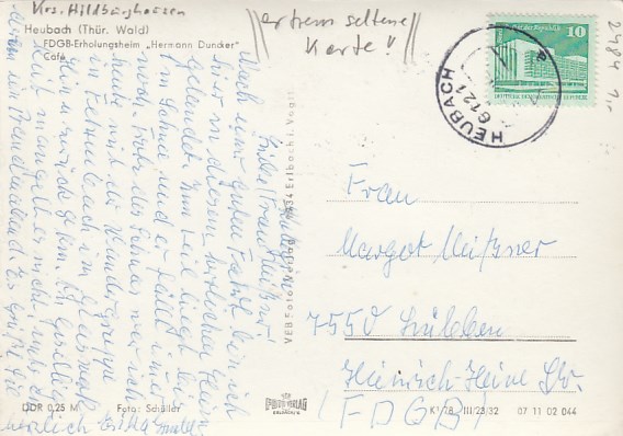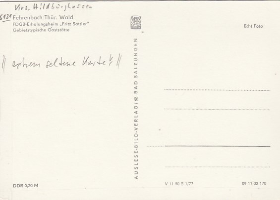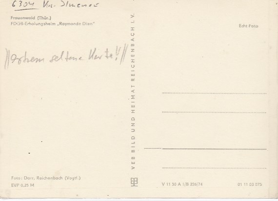Frauenwald am Rennsteig in Thüringen FDGB-Heim Raymonde Dien 1980