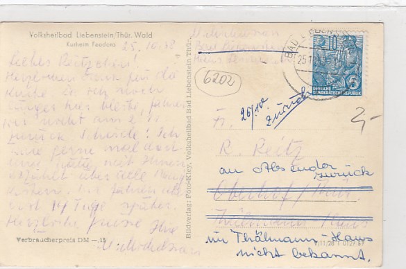 Handwerker-Erholungsheim Altenstein bei Bad Liebenstein in Thüringen 1951