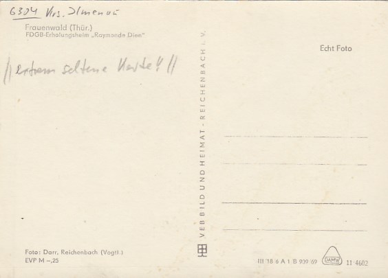 Frauenwald am Rennsteig in Thüringen FDGB-Heim Raymonde Dien 1969