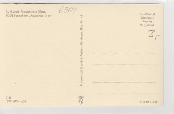 Frauenwald am Rennsteig in Thüringen FDGB-Heim Raymonde Dien 1965