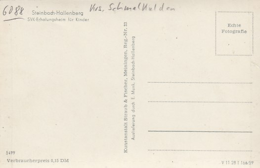 Steinbach-Hallenberg in Thüringen SVK-Erholungsheim für Kinder 1959