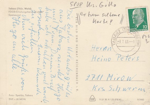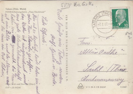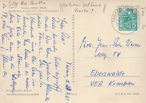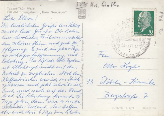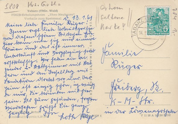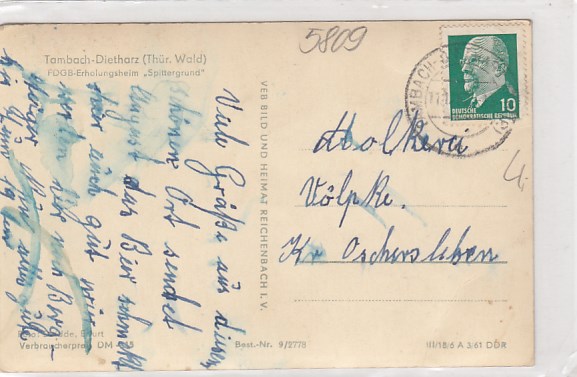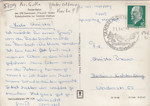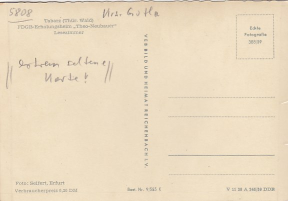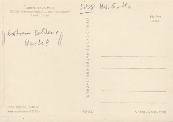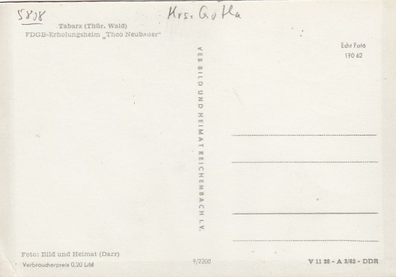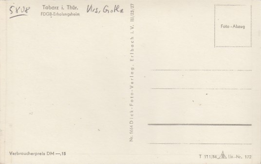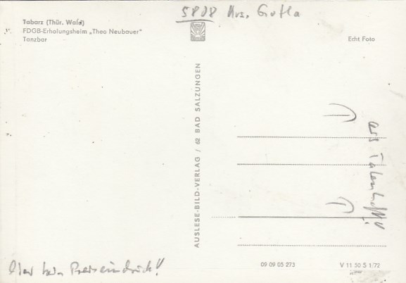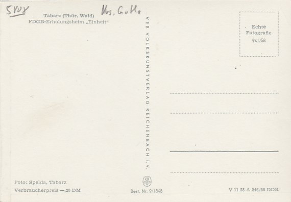 Tabarz in Thüringen Erholungsheim Glückauf 1959