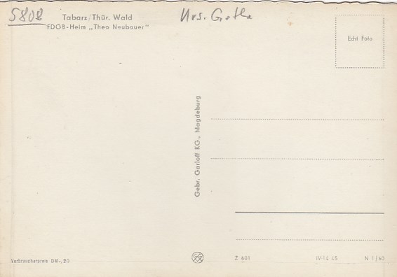 Tabarz in Thüringen Richard-Horn-Heim 1953