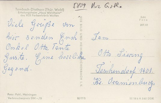 Tambach-Dietharz in Thüringen Haus Waldheim 1962